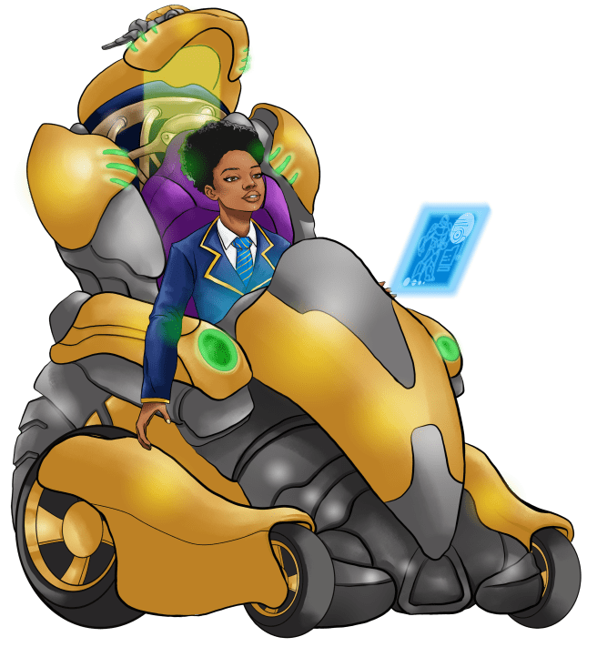 Whilst Summers’ was speaking, Firewall tried to focus in on the Bluetooth-like signal, which now clearly came from L33t. It appeared to be an automatic connection between the suit and other nearby components; a link to a wheeled vehicle or wheeled mechanisms of some sort? She appeared to have used the Bluetooth, despite its many failings – range being one – to get round the Wi-Fi blackout of the chamber.