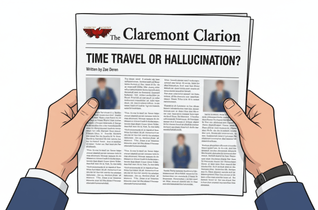 Gustav started banging on his door. Chris made sure he was fully dressed before he opened the door to his friend. He was holding the latest copy of the monthly school newspaper, the Claremont Clarion, with a “Time Travel or Hallucination?” banner headline, written by Zoe Deren. Underneath it, the incident at the science fair was the main story. Despite what Beaky Hawke had said to her about only reporting facts – something he highlighted with copies of the Weekly World News to illustrate the slippery slope of reporting rumour and innuendo rather than solid facts, Zoe had still managed to slide in the ‘theory’ that the ‘accident’ may have involved time travel. She’d left out the bit about certain pupils apparently being metas, but it was still there if you read between the lines.