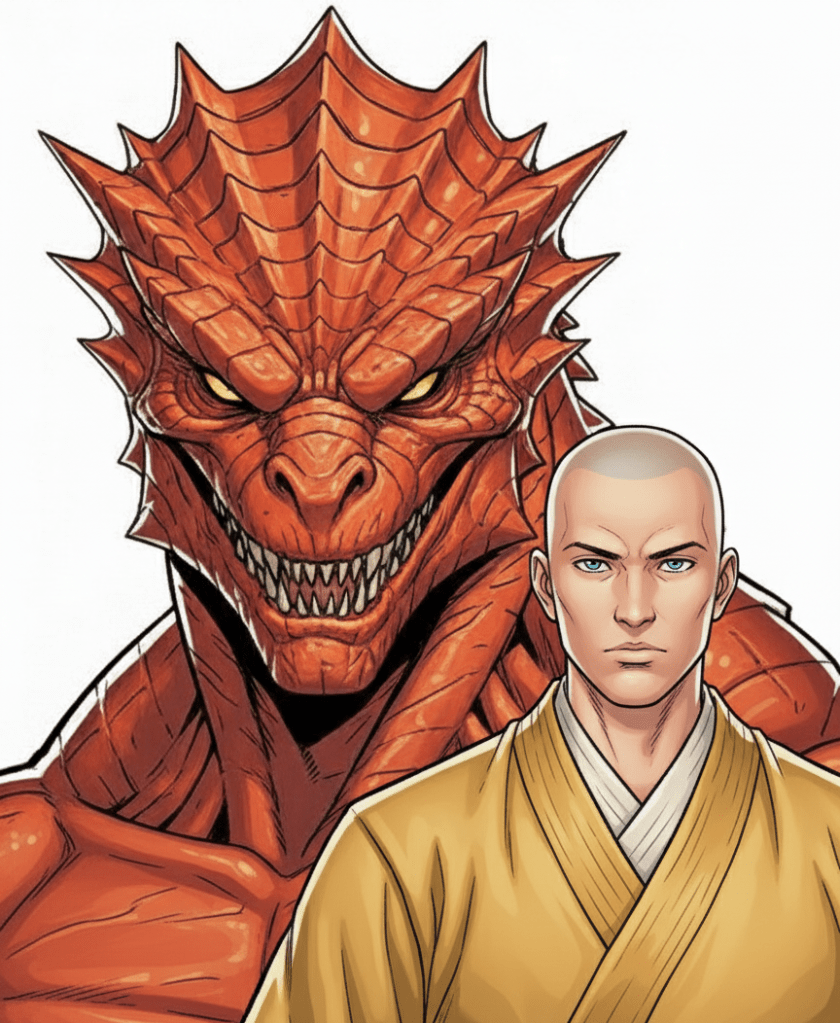 On stage, they could see that several of the teaching staff were already seated while Summers stood behind the lectern. Sitting beside him at the front were two members of The Balance; a large seven-foot tall dragon-like humanoid with a big friendly grin on his face and a smaller, shaven-headed adult, with European features but dressed like an Asian monk.