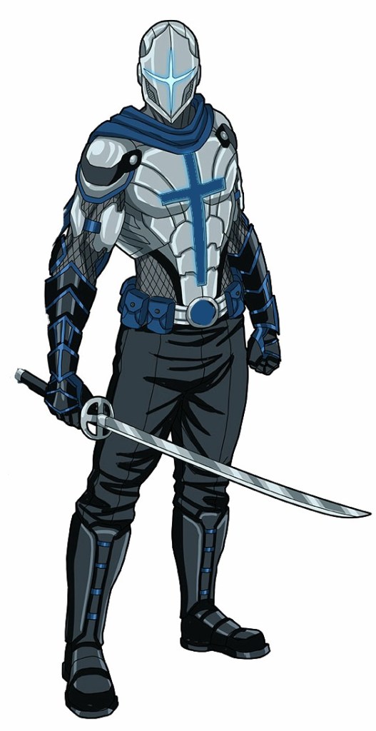 Chis was for suiting up immediately and offering assistance when two vans suddenly screeched to a stop just behind them and six figures jumped out. They were dressed in identical dark, body armour. Although their armour did not appear to be powered, it made for an intimidating sight – helmets with a cross-shaped visor, Kevlar body armour, heavy gloves and boots and each was carrying a Katana, a Japanese sword. They were sure that these were not originals, they looked like cheap, ornamental knock-offs, bought from a gift shop rather than a martial arts supplier, though still sharp enough to do some serious damage. Gustav muttered about the legality of carrying such long-bladed weapons in public as one of them pointed up towards Zoe and the others on the top balcony.
