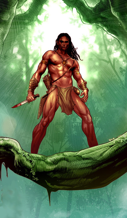 They rushed in closer and from their vantage point, high above, they could see the crashed skimmer. What had brought it down was uncertain, but it was now the scene of a battle. Surrounding the vehicle were what looked like human-sized reptiles armed with spears and waving chunks of crystal around from which erupted fire, almost like some form of gun? These presumably sentient creatures for the most part were mounted on what looked like giant iguanas. On top of the ship were the remnants of the defenders, three of whom looked like Amazonian natives, with long dark hair and heavily tattooed skin. These were armed only with spears, and it looked as though there were another four of them on the ground, either dead or dying. What really caught their attention however was their apparent leader, a white skinned, scar-covered, athletic-looking man in a loincloth, his hair shorter than his fellow survivors.