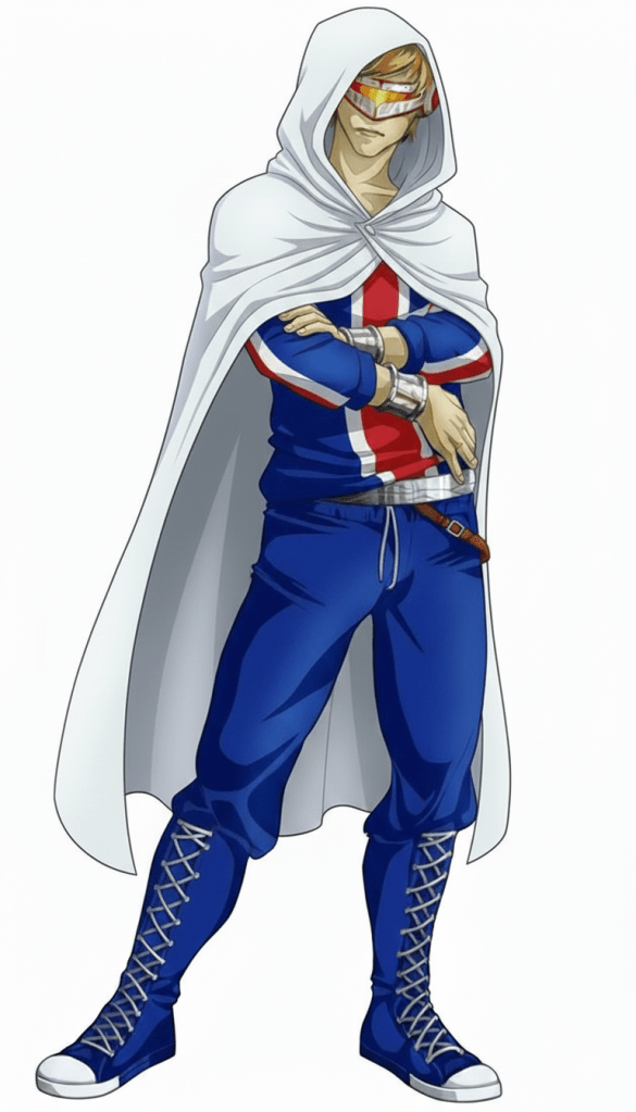 Equipment: Commlink, Anonymity Collar / Costume [Protection 2, +2 Toughness, Chameleon], Grapple Gun [Movement 1, Swinging], Expandable Bo Staff, Utility Belt (variable) – includes Misc. bombs, ear plugs, Rebreather, Mini-tracer, memory cloth (Cloak or hang-glider – requires Bo Staff, Flight 1).