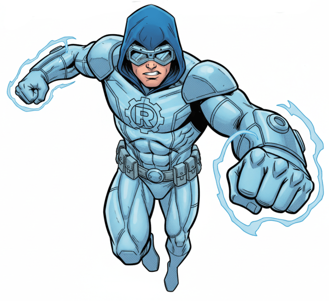 Leroy Hawke is a reformed villain. Known as Boost, Leeroy was defeated repeatedly and eventually thrown in Rannoch Secure Prison after trying to rob a security truck. For the next decade, he rearranged his priorities and participated in several “Stay Straight” programmes for kids. He proved to be a powerful motivational speaker, enough so that he did the talk show circuit for several years after his release. Eventually, Duncan Summers convinced him to work at the school, teaching kids about art and philosophy during class and meta-powered ethics and the need to treat one’s abilities responsibly to the special curriculum/HCP classes.